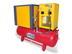 Kompresör, tank ve kurutucunun bir arada olmasıyla ayrı konumda kapladıkları alandan daha az yer kaplar.